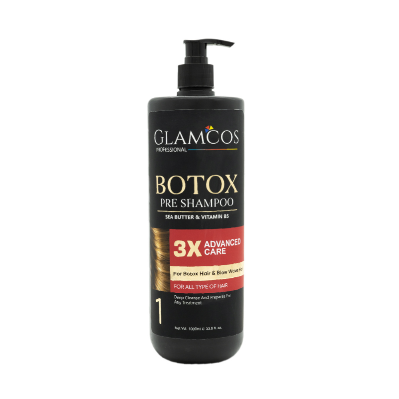 Prepare your hair for intensive repair with GLAMCOS Professional Botox Pre Shampoo, a salon-grade formula designed to deeply cleanse, nourish, and strengthen hair before shampooing. Enriched with Shea Butter and Vitamin B5, this advanced pre-shampoo treatment removes buildup, excess oil, and impurities while maintaining essential moisture.