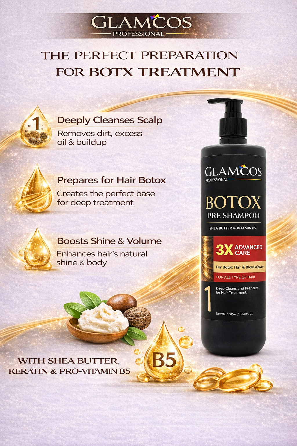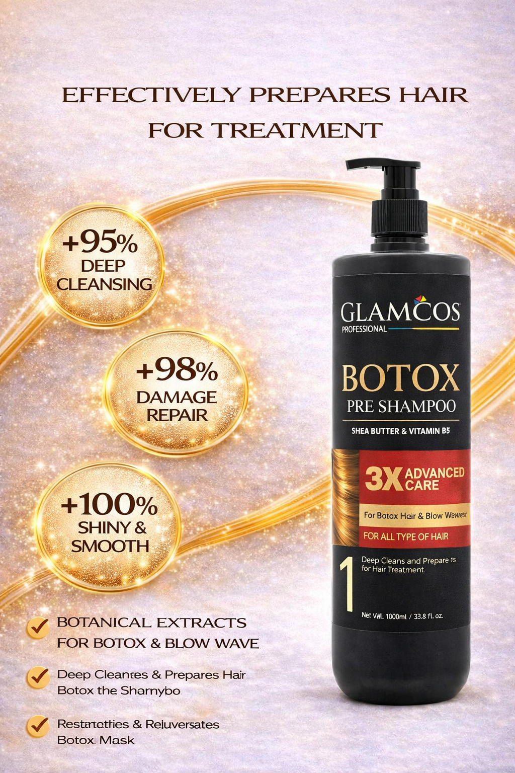 GLAMCOS Professional Botox Pre Shampoo 1000 ml – 3X Advanced Care with Shea Butter & Vitamin B5 for Deep Cleansing & Hair Repair
